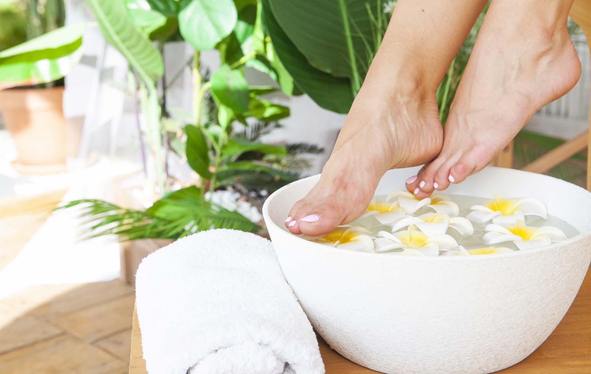 足湯や蒸しタオルを活用
